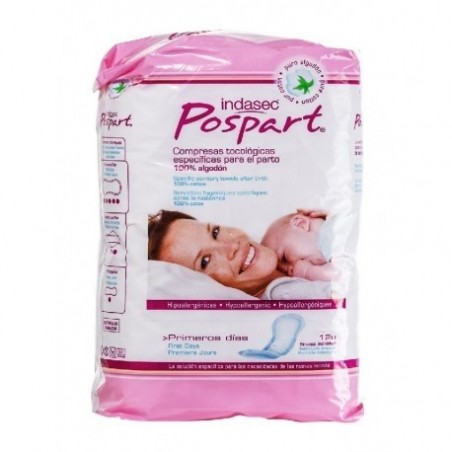 Indasec Postpart compresas algodón primeros días 12 unidades