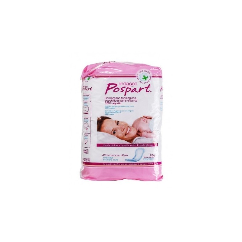 Las compresas tocológicas postpart Indasec son compresas de 100% algodón puro de gran tamaño y capacidad de absorción ante las pérdidas derivadas del parto u otras intervenciones de la zona genital.